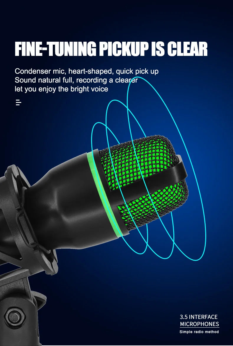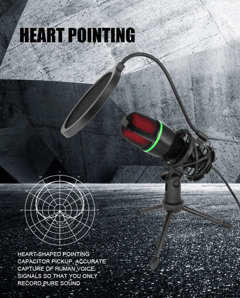 Professional USB Condenser Microphone For PC Laptop Streaming Video Games YouTube Podcasts Vocals