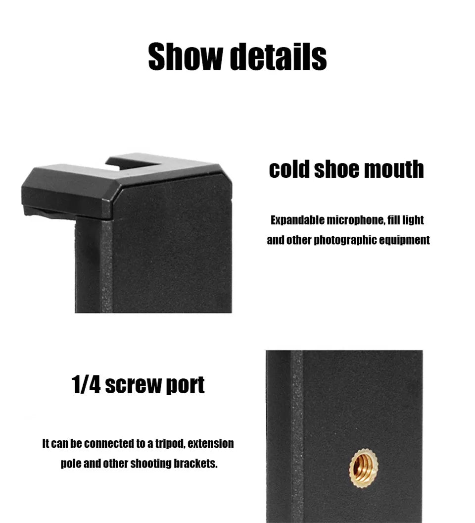 【Dual-purpose tripod】The tripod can be used as a desktop tripod when unfolded, and can be used as a portable or mobile phone holder after folding.