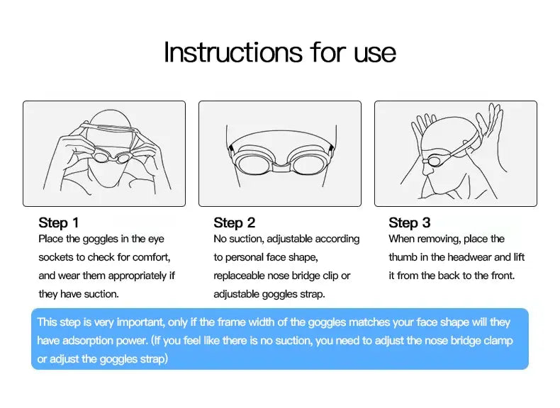 2. Elasticity: Swimming goggles should be worn according to your own comfort. They should not be too loose, as they will easily enter the water, and should not be too tight, which will put more pressure on the head and eyes.