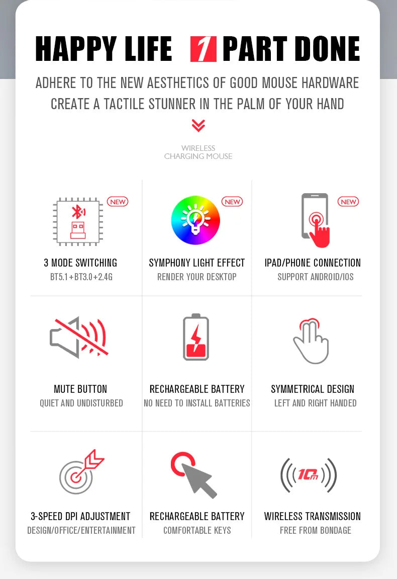 Tablet Phone Computer Bluetooth Wireless Mouse Rechargeable RGB Backlight Mice for iPad PC Laptop Tablet Phone 2.4GHz USB Mouse