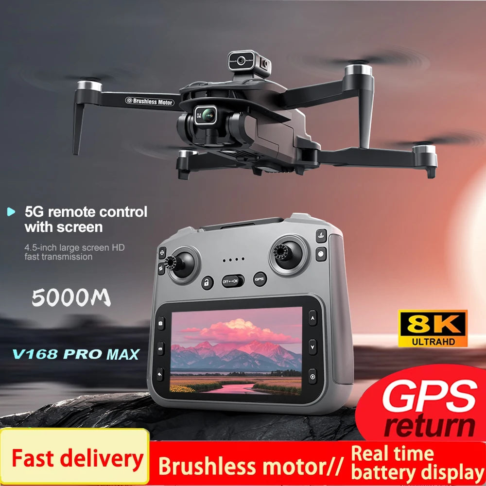 2025 New V168 PRO MAX Drone with Screen Remote Control 5G WIFI GPS 8K Professional Camera FPV Drones RC Quadcopter Helicopter