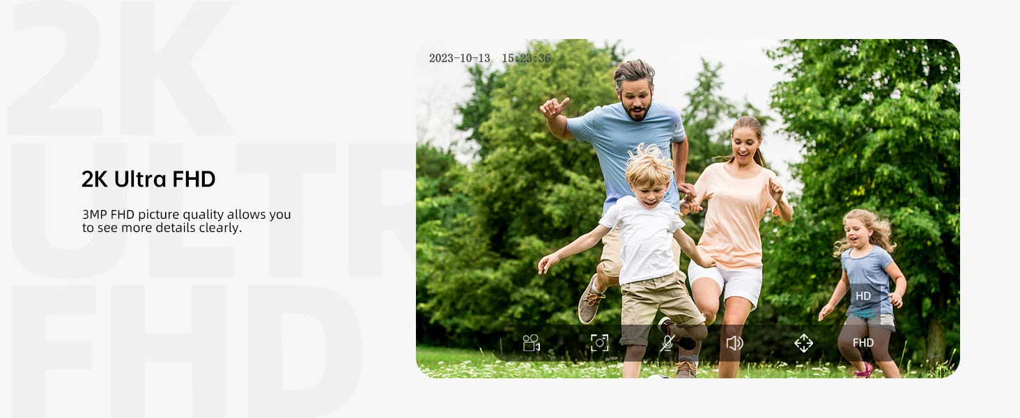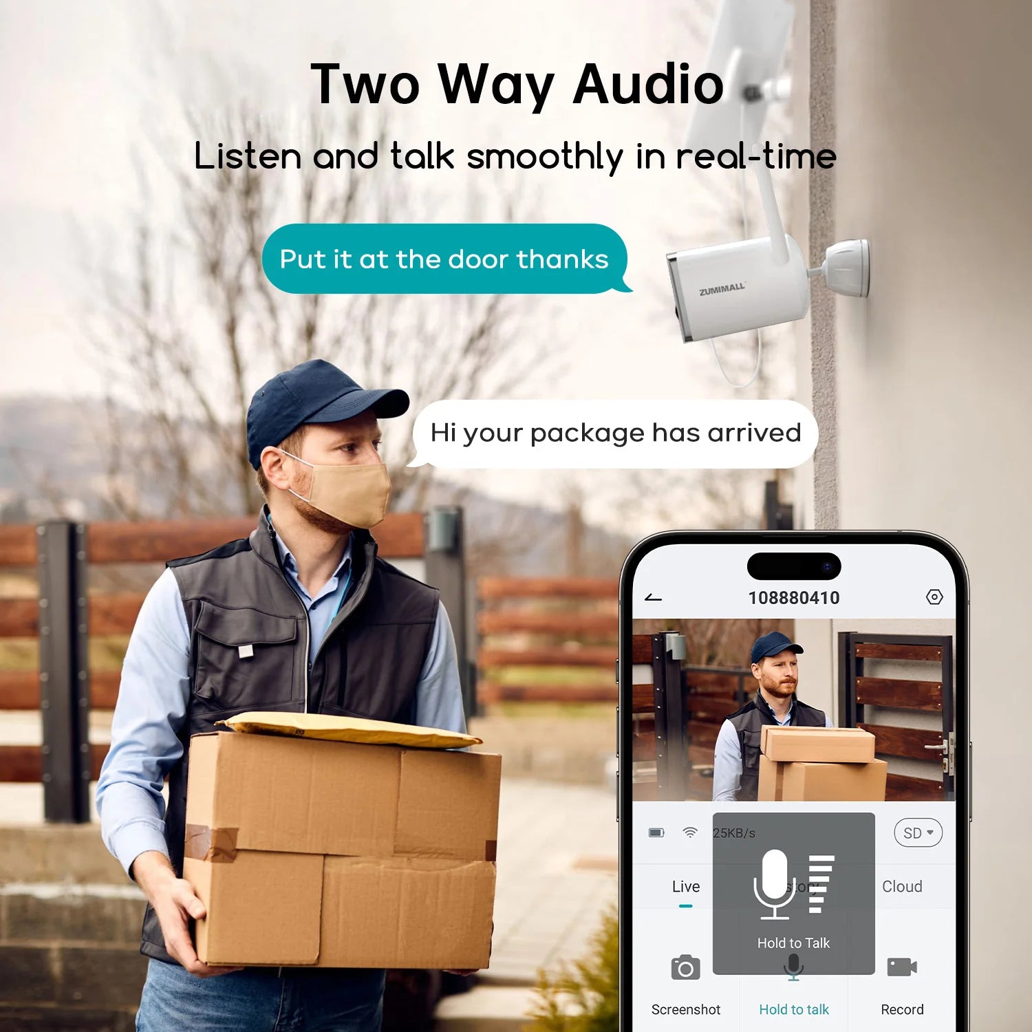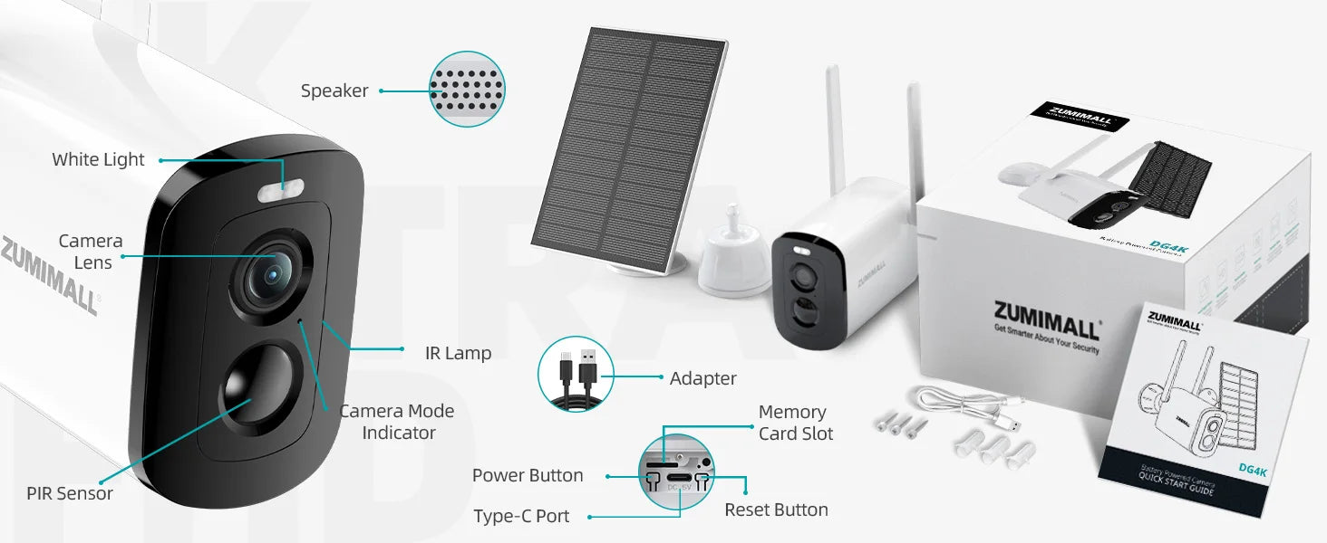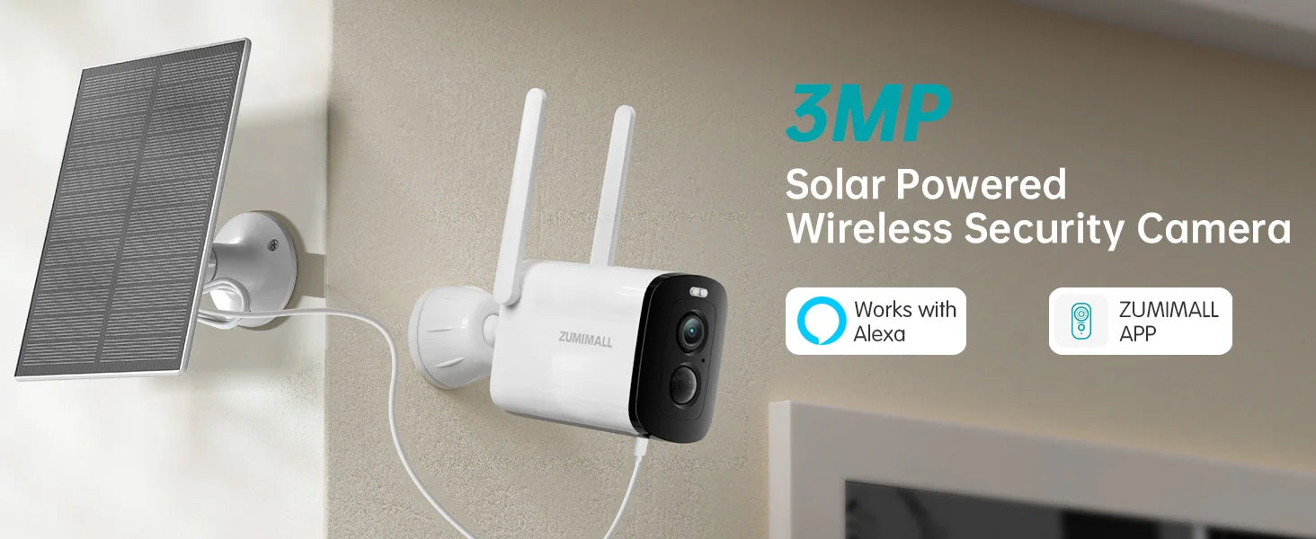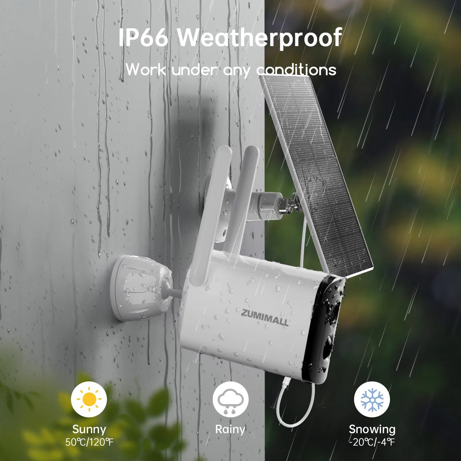 ZUMIMALL 2K Solar/battery Camera for Home Security, 3MP Color Night Vision, Wireless Outdoor,2.4GHz WiFi, 2-Way Talk,