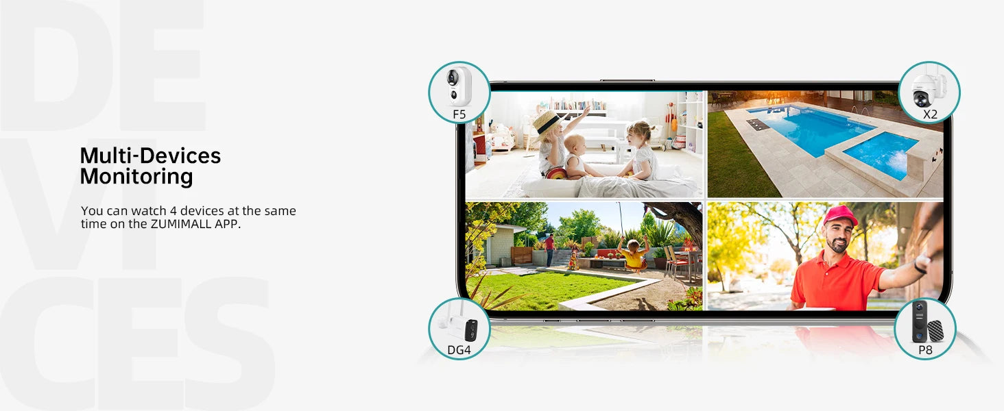 You can watch 4 devices at the sametime on the ZUMIMALL APP